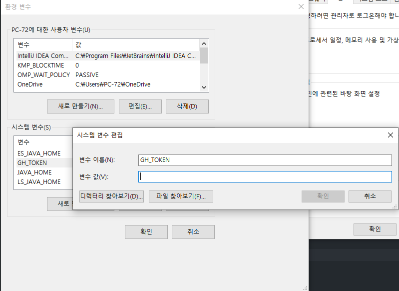 private repository 일 경우 환경변수에 git token을 세팅해 줍니다.